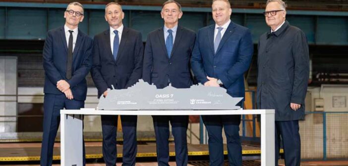 Royal Caribbean has marked the steel-cutting ceremony for its seventh Oasis-class ship due for delivery in 2028 from Chantiers de l’Atlantique in Saint-Nazaire.