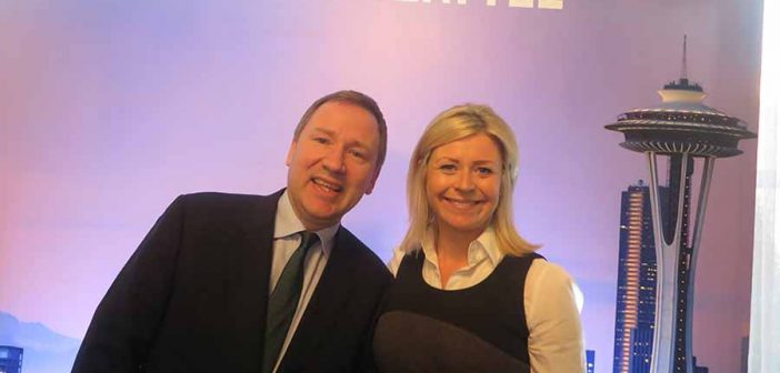 Stephen Kavanagh and Yvonne Muldoon of Aer Lingus at the announcement of the new Aer Lingus to Seattle route for 2018