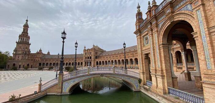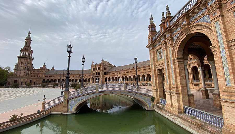Start your tour at Plaza de España, Seville’s stunning semi-circular square, adorned with colourful tiled alcoves and a canal crossed by ornate bridges. Admire the neo-Mudejar architecture and the grandeur of the Palacio de España. From here, stroll west through Parque de María Luisa, a lush park with fountains and shaded paths, capturing Seville’s romantic charm.