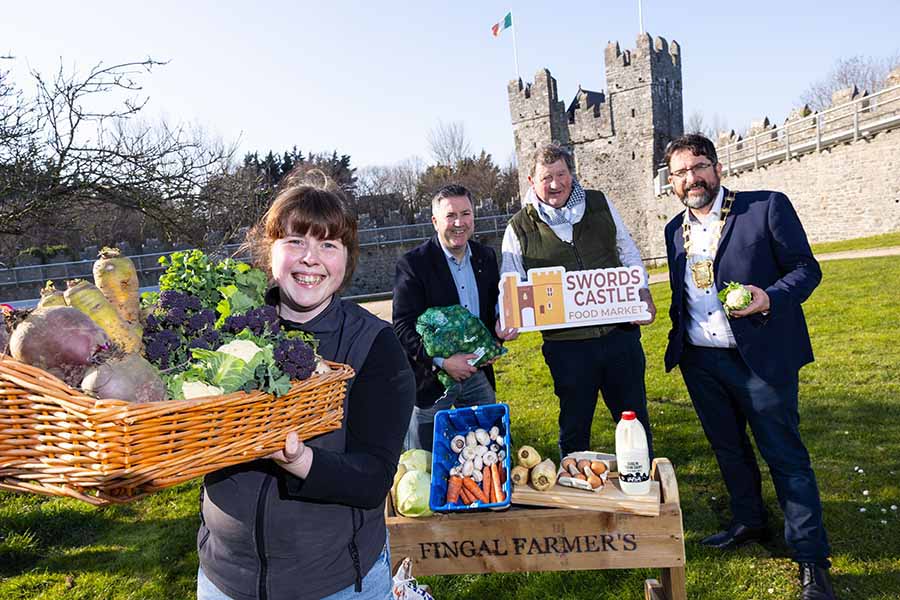 Pictured at the launch of the Swords Castle Food Market were Niamh McNally (McNally Family Farm), Declan Power (Fingal County Council), Jim Scully (Fingal Farmers Group) and Cllr. Brian McDonagh (Mayor of Fingal County Council)