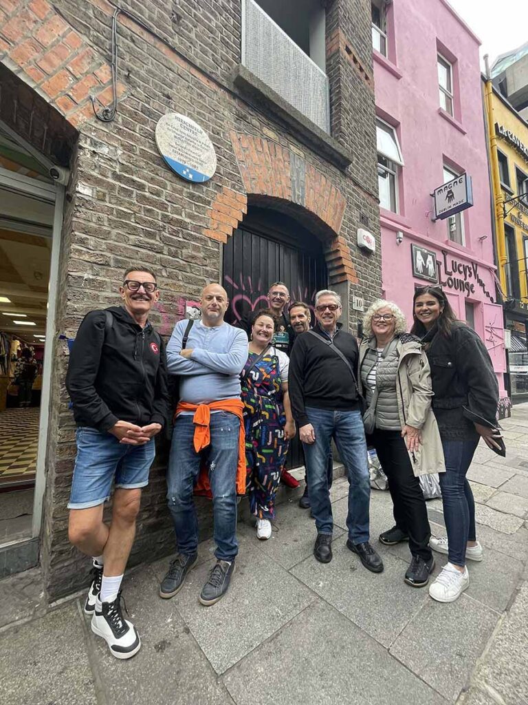 The group’s itinerary includes a Lavender Walk Queer History Tour of Dublin, visits to various attractions such as Killruddery House & Gardens, Game of Thrones Studio Tour, Hillsborough Castle, and Titanic Belfast, as well as participation in events like the Open Drag Stage at The Maverick and the Dublin Pride Parade.