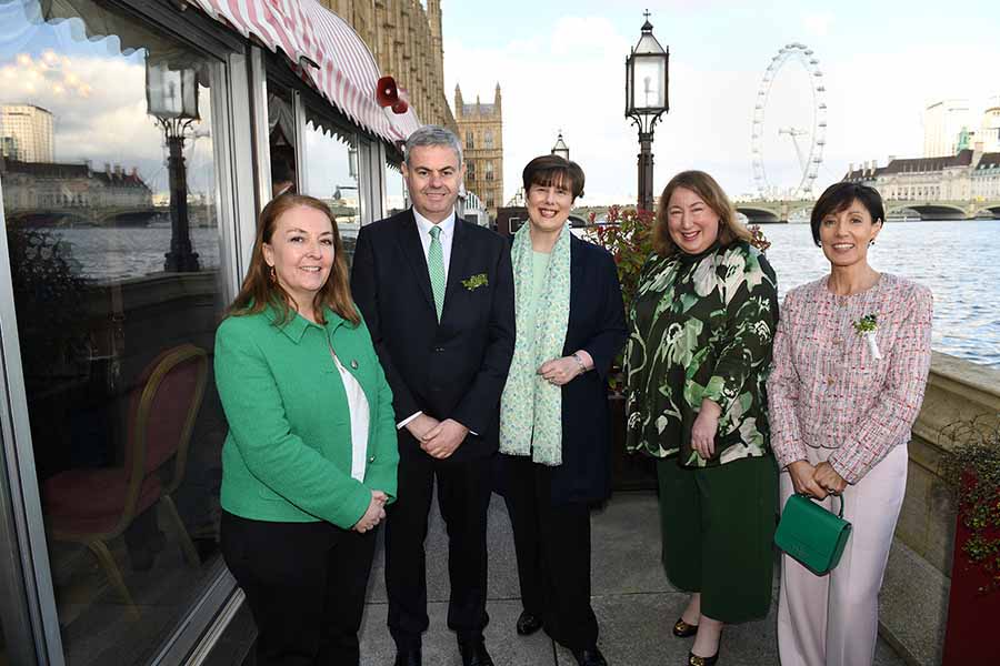 Deirdre Fraser; Ciaran O’Brien, Minister Norma Foley, Martin Fraser, Ireland Ambassador in London; Minister Fleur Anderson at the Northern Ireland Office; and Siobhan McManamy, Tourism Ireland,