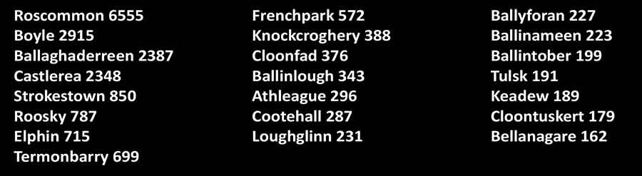 • Roosky (787 inhabitants): Roosky stands on the River Shannon with access to Lough Bofin. Visitors might expect water-based activities such as boat hire and adventures on the river, along with fishing and peaceful countryside surroundings.