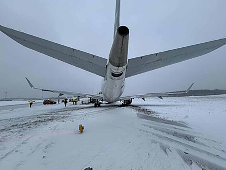 The flight from Warsaw touched down at 13:43 local time. The plane veered off the paved surface while taxiing toward its stand. Airport officials closed the runway temporarily until at least 17:00.
