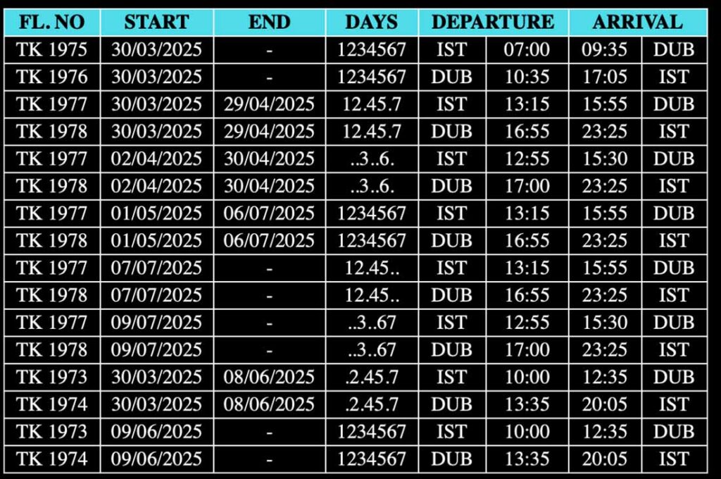 Turkish Airlines will increase the number of weekly flights between Istanbul and Dublin from 18 to 21 starting 9 June 2025.