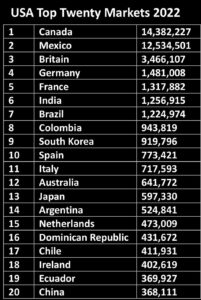 As other countries inbound markets to USA grows, Ireland has slipped out of the top twenty source markets to the United States for July 2023. In 2022 Ireland was in 18th place when overall visitors numbers for the year were considered.