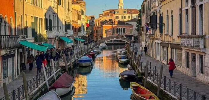 Cross the bridge into the San Polo district and head south along quieter paths past markets and local shops to the Ponte dell’Accademia, the wooden bridge rebuilt in 1985 providing wide views along the Grand Canal towards Santa Maria della Salute.