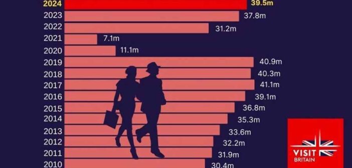Visitbritain is forecasting that 39.5m visits will be made to Britain in 2024, up 5pc from the expected 37.8m visits in 2023.