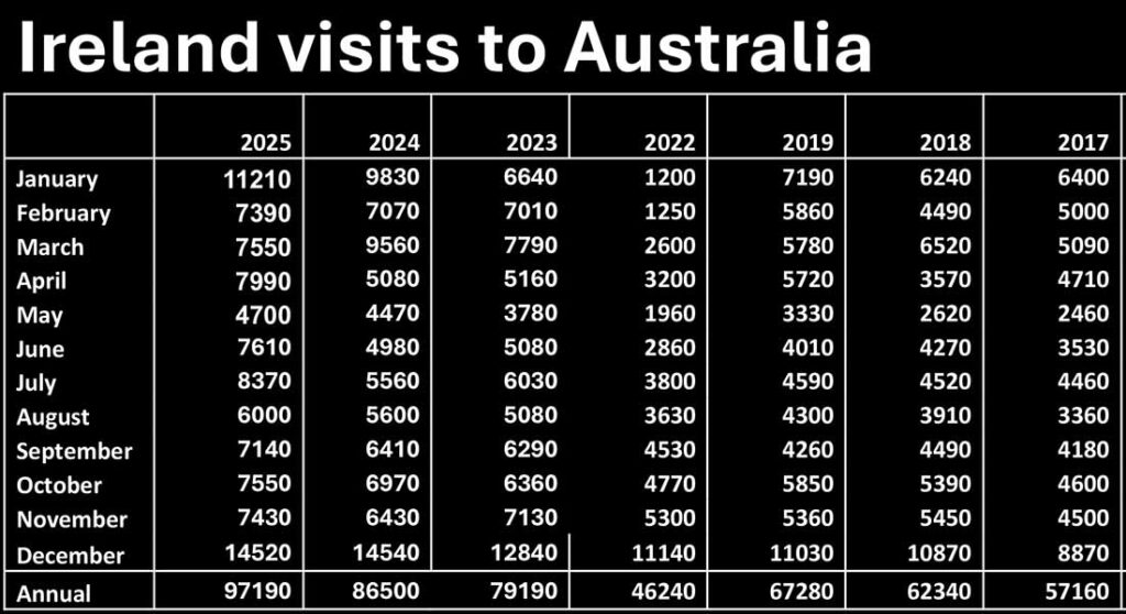 The 12 months to April 2025 saw 13,500 people leave Ireland to go to Australia, according to the CSO , an increase of 27pc from 2024.