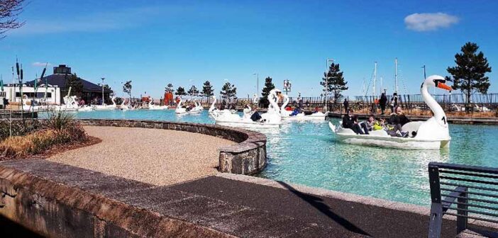 • Giant Pedal Swans: Iconic pedal-powered swan boats navigate a shallow lagoon, offering family fun with panoramic views of Bangor Bay. Infants (e.g., 5-month-olds) can sit on parents’ laps.