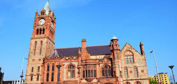 - The Guildhall’s red sandstone exterior, Tudor overtones, and neo-Gothic design make it one of Ireland’s most iconic buildings. Its clock tower, modeled on London’s Big Ben, is a citywide beacon. Inside, over 20 magnificent stained-glass windows, donated by London guilds, depict key moments in Derry’s history, such as the Siege of Derry and the Plantation of Ulster.