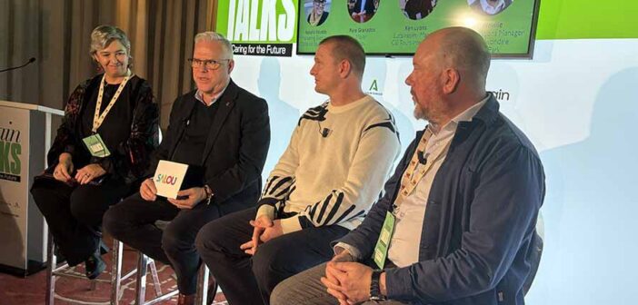 Natalia Bóveda of Costa del Sol, Pere Granados Mayor of Salou, Ken Lyons of CIE tours and Pat Neville of Coillte, Spain Talks sustainability conference in the Radisson Royal hotel, Dublin, November 12 2025